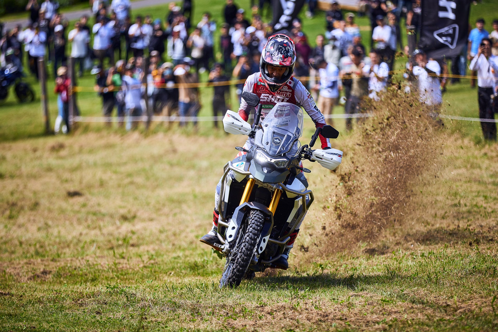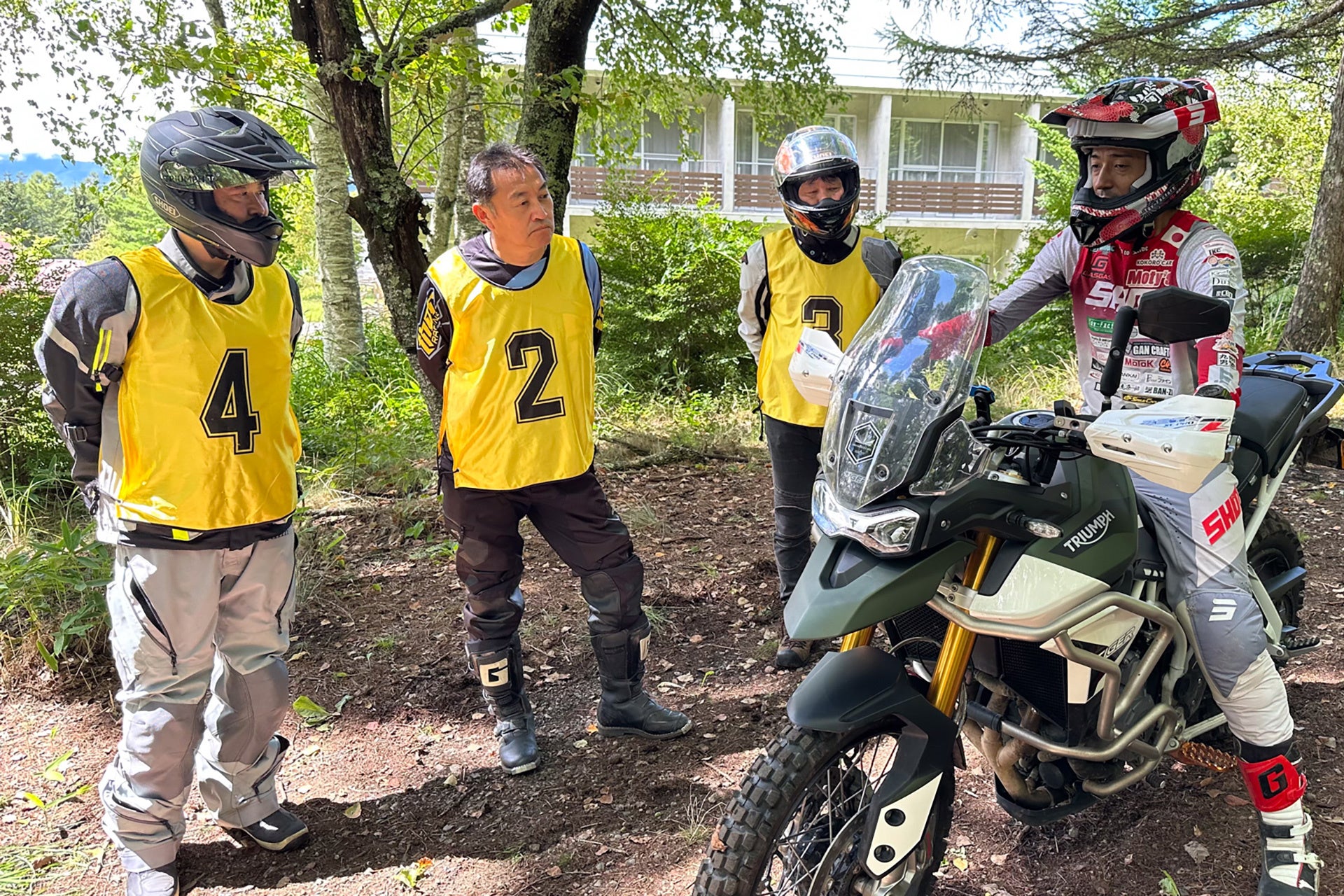 会場の富士見高原スキー場は広大な丘陵地。ここでトライアンフが誇るアドベンチャーバイク、 Tigerの性能をゲストであるプロライダーの「和泉 拓 選手と太田 幸仁 選手」に発揮してもらいます。