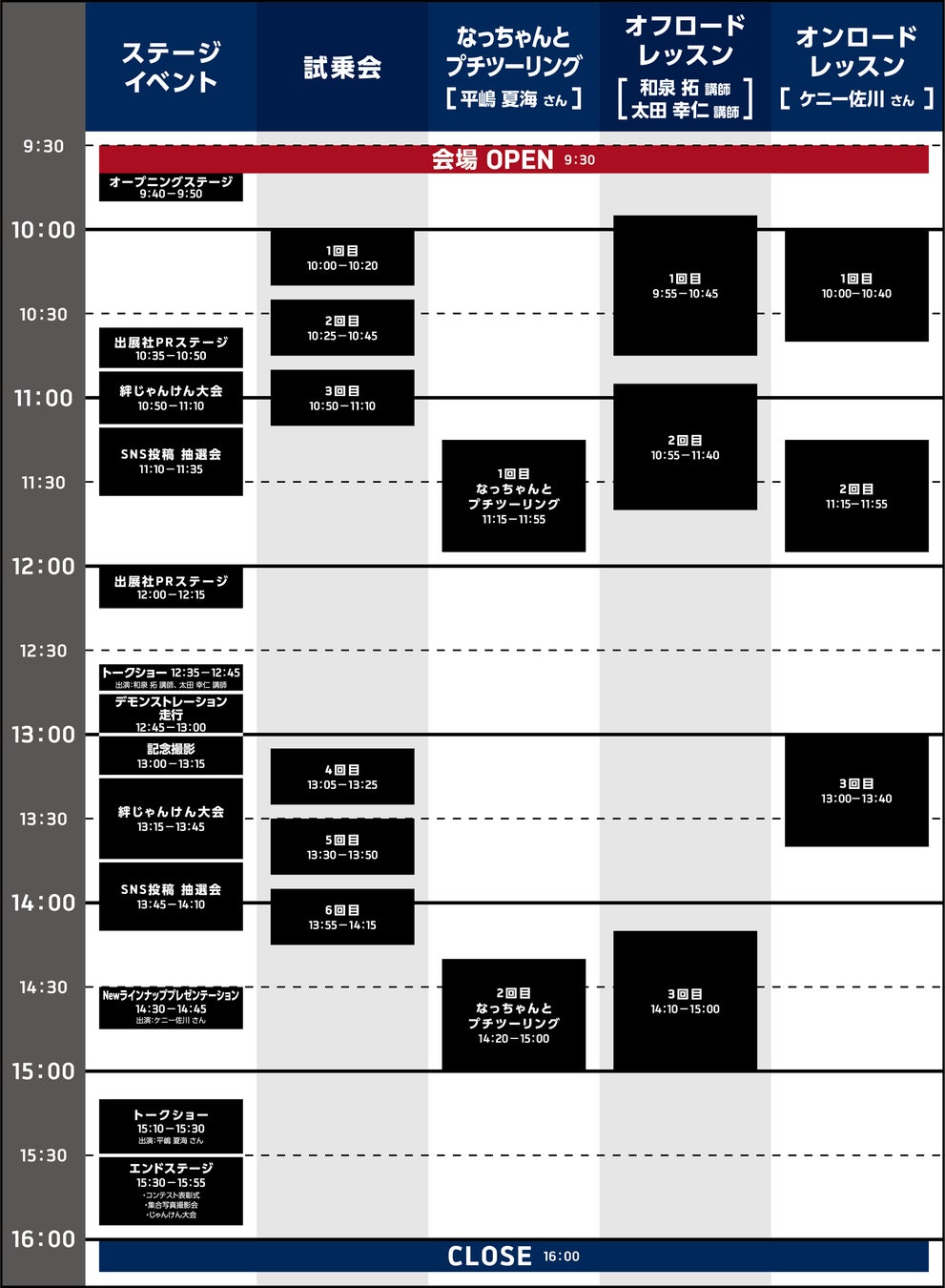 ※時間は予定時刻となり、今後変更の可能性がございます。※雨天決行/荒天中止