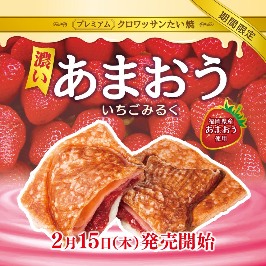 【福岡県産 あまおう使用 】 新作 プレミアム クロワッサンたい焼 『濃い あまおう いちごみるく』2月15日(木)発売 !