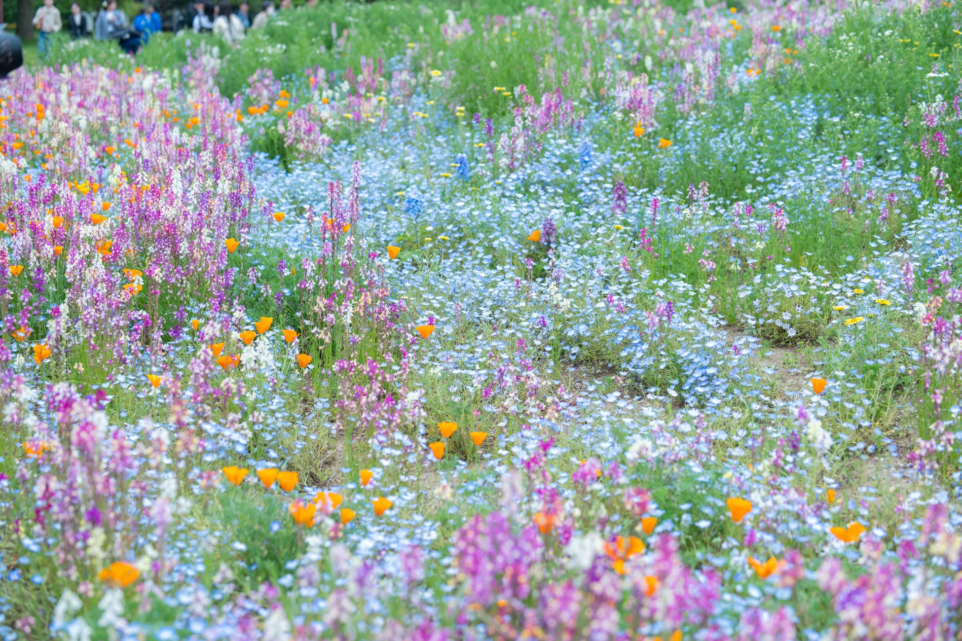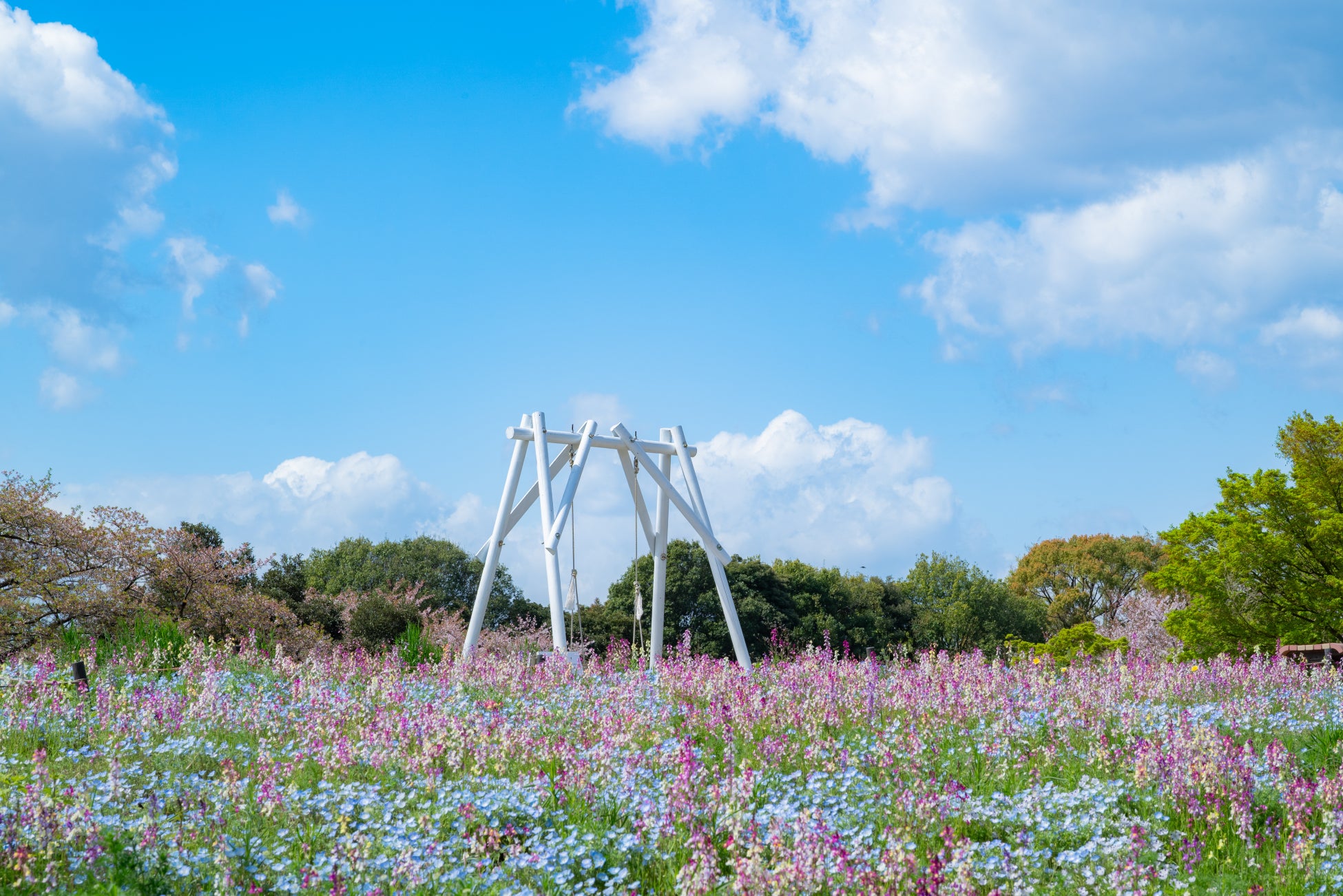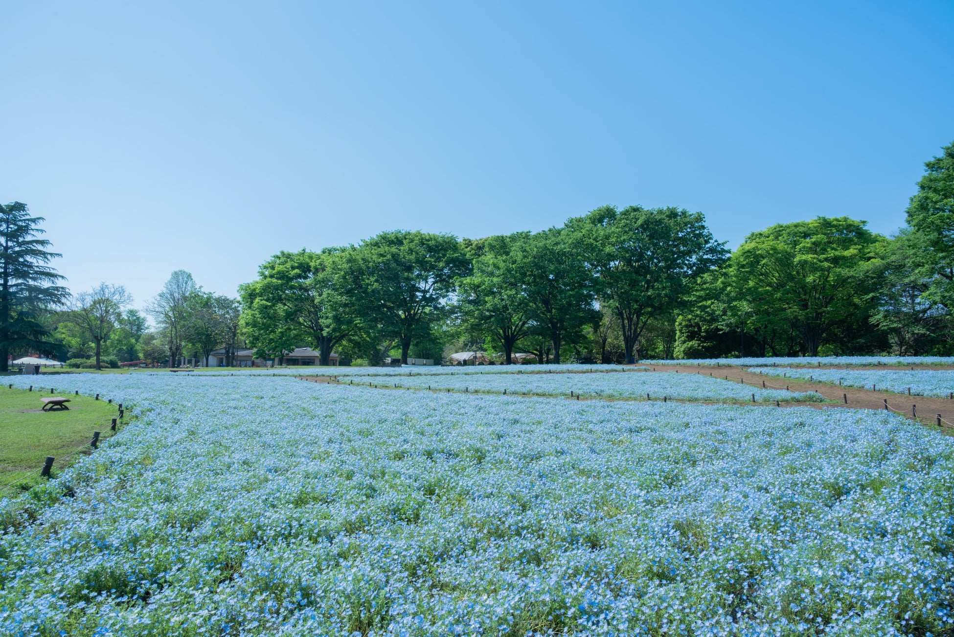 見渡すかぎり青一色の景色が広がる春の昭和記念公園で、美しく咲く花たちを見ながら、のんびりお散歩を楽しんでみてはいかがでしょうか?