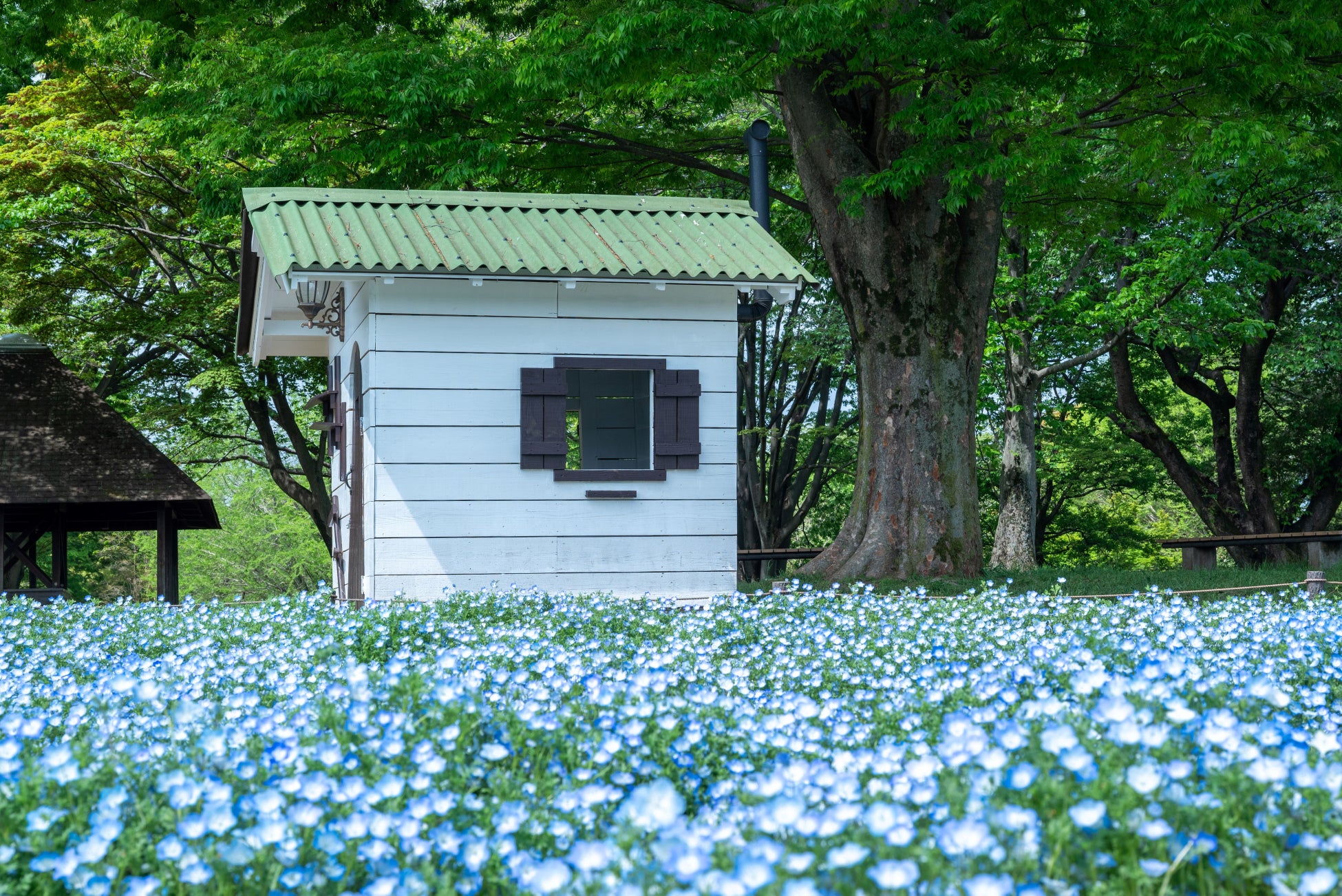 周りにはネモフィラがふんわりと咲いていて、お花に囲まれた小さなおうちで過ごしているような写真が撮れます。