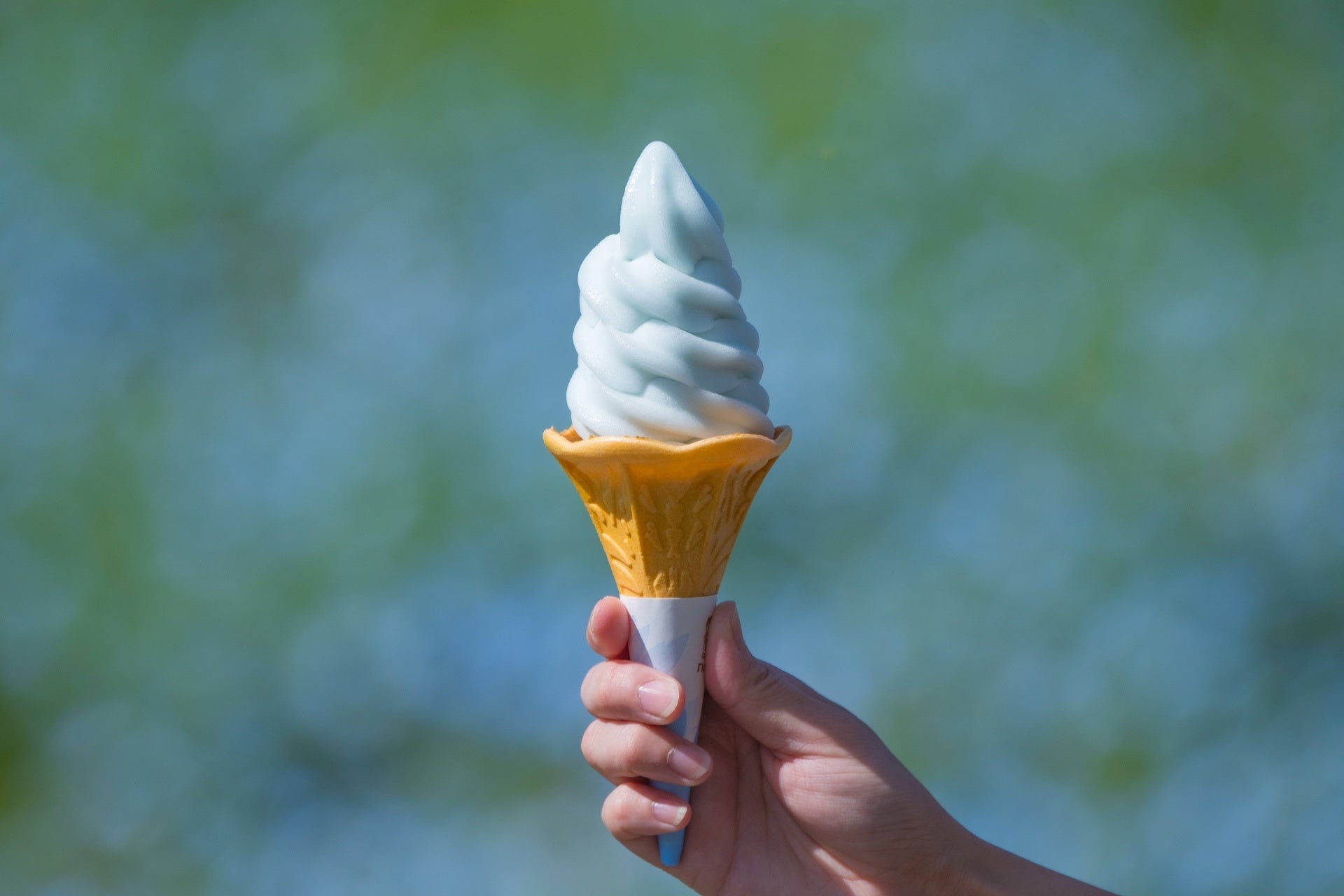 渓流広場レストランで提供されている「ネモフィラソフト」は、その花のような澄んだ青色が特徴のソフトクリームです。見た目のかわいさはもちろん、ラムネのさっぱりとした味わいが、お散歩中の食べ歩きにぴったりです。