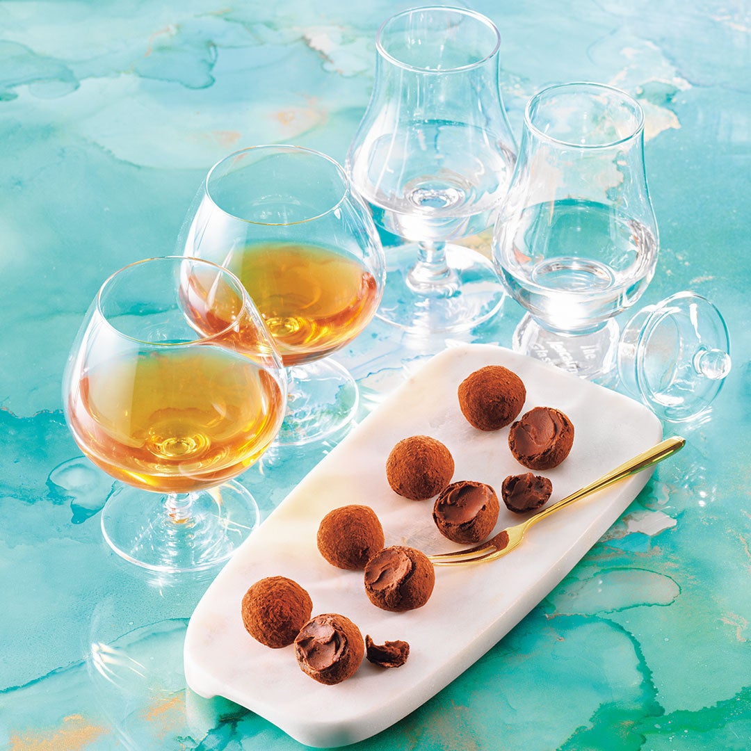 カリブ海に浮かぶフランス海外県の島々で造られるフレンチラム(※)「ラムJ.M ゴールド」「ラムJ.M XO」「トロワ・リビエール ブラン」「ペールラバ ブラン」を、4種類のトリフに。ガナッシュにはミルク感を抑え、カカオ感や甘さのバランスを整えたチョコレートを使用し、ラム酒の香りを引き立たせています。ラム酒以外のレシピは4種揃えているため、風味の違いを存分に味わっていただけます。それぞれのフレンチラムの個性が引き立つこだわりのトリフで、4種の食べくらべをお楽しみください。
