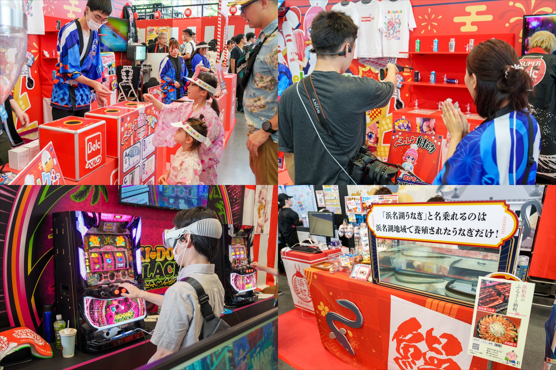 「静岡県浜松市」のブースでは、VR体験や名産品の販売に加えて、実際に水槽で泳ぐうなぎの活魚の展示も行い、来場者からの注目を集めました。