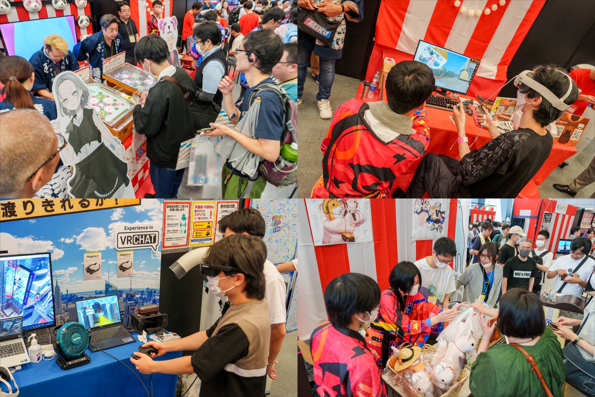 「VRChat」ブースではVR空間を通じて地球の反対側にいるVRChatスタッフと交流できたほか、有料サブスクライブである「VRChat+」を来場者限定で、1カ月分を無料で配布するなどして注目を集めました。
