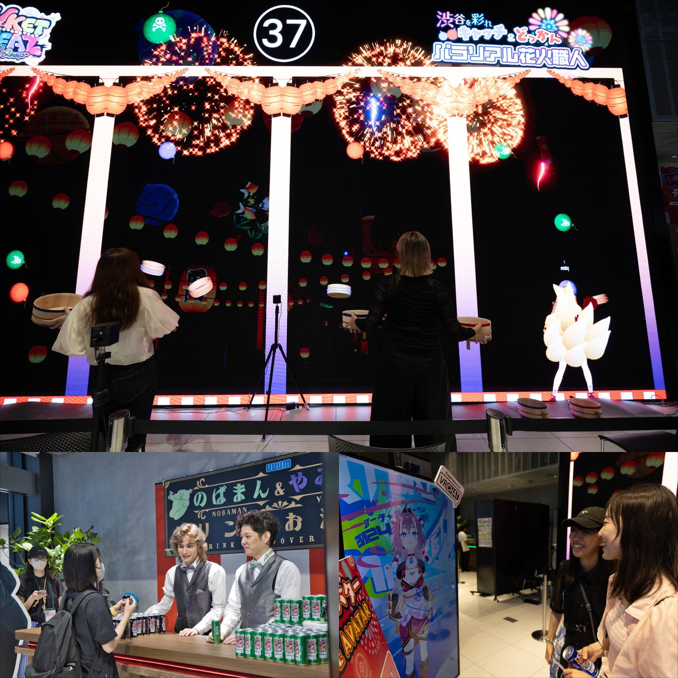 また、会場に設置したモニターに映るアバターと直接会話することができる「ウェルカムメタバース」や、会場の巨大モニターを用いてリアル会場の人とVR会場の人とで協力して花火を打ち上げるメタバースゲーム「渋谷を彩れ キャッチ&どっかん パラリアル花火職人!!」も展開。バーチャルとリアルの垣根を越える体験を提供し、来場者からも好評でした。