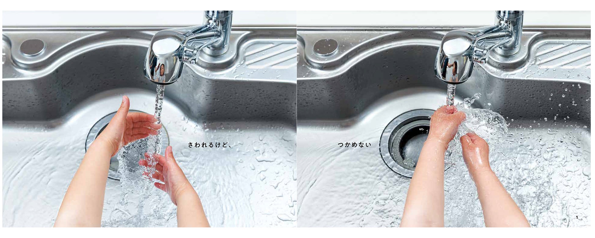 本作では「氷→水→みえない水(水蒸気)」へと変化する様子と、