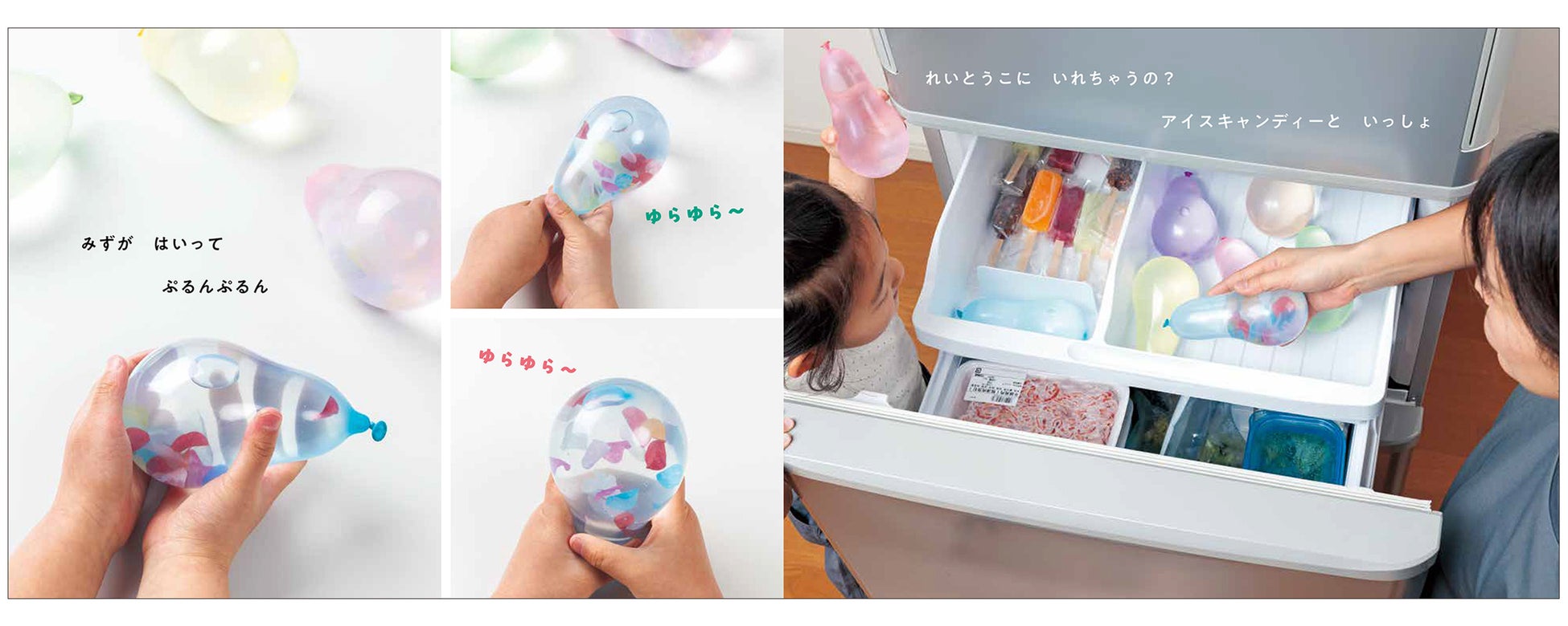じゃぐちから出てきた水で水風船をつくったら、冷凍庫でカチコチの氷に!