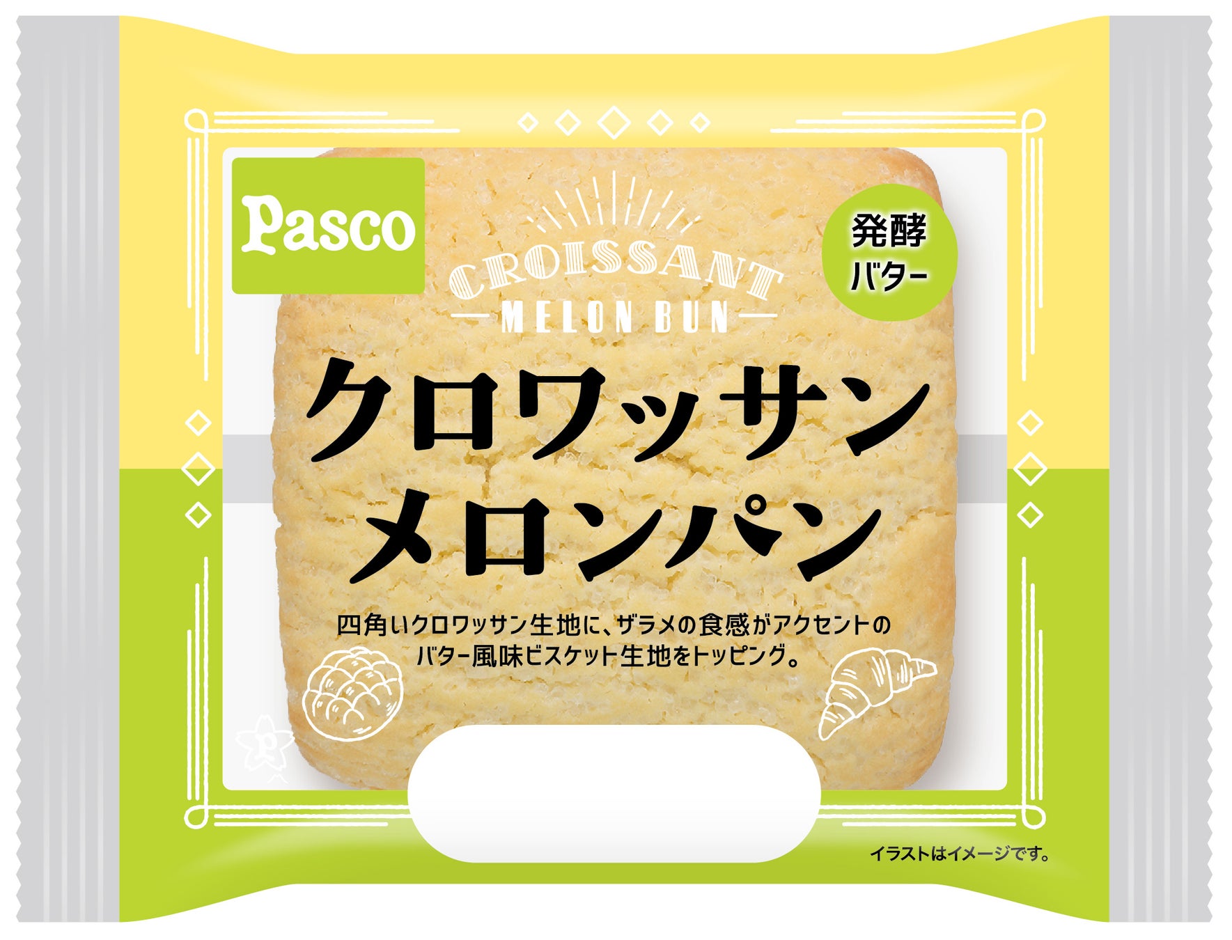 四角いクロワッサン生地に、ザラメの食感がアクセントのバター風味ビスケット生地をトッピングしました。