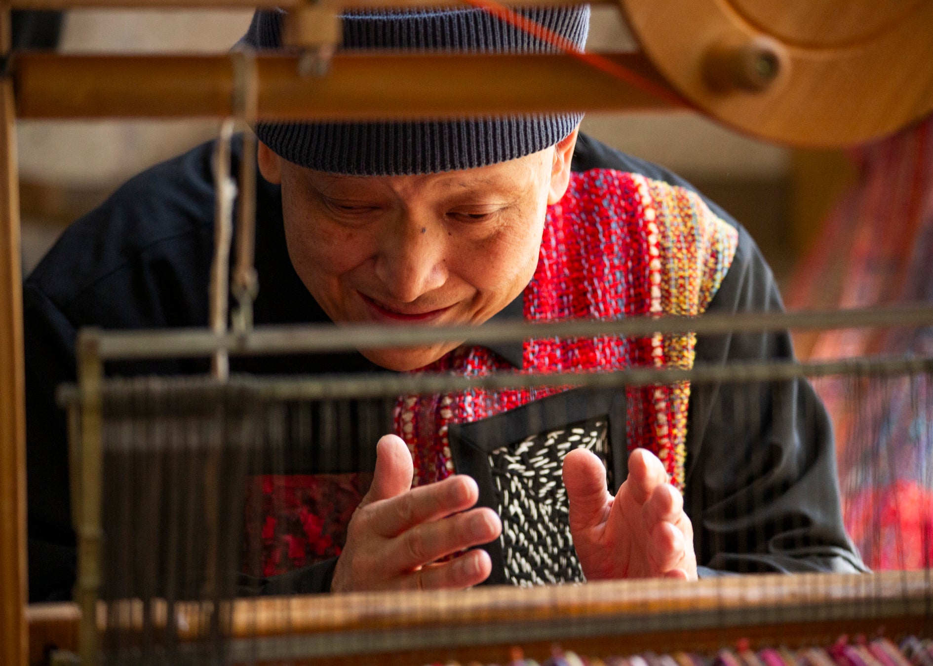 この展示を通して、手織りや手仕事の繊細さと美しさに光をあて、作家の一手一手が積み重なって生まれる色彩や質感、 そして静かに繰り返される営みに想いを巡らせていただければ幸いです。