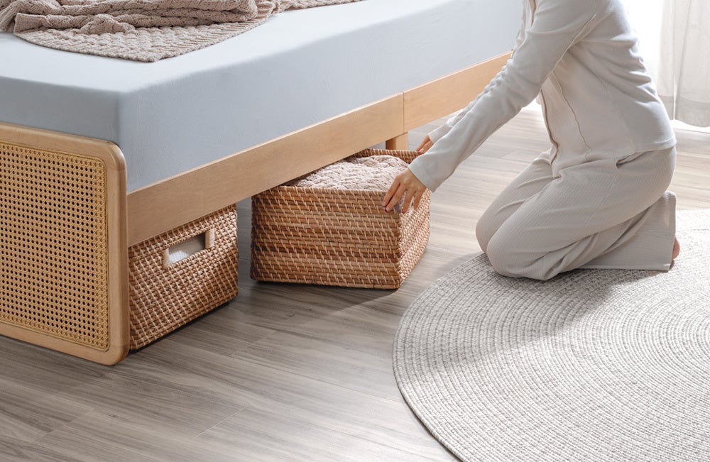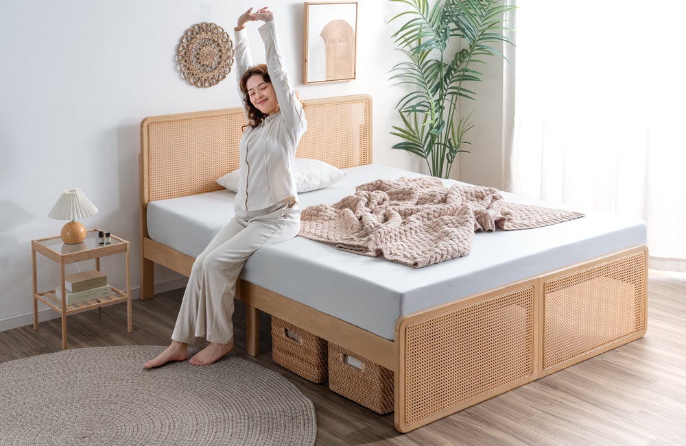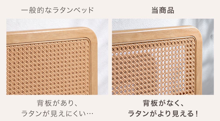 ヘッド&フットボードのラタンが映えるベッドが登場!天然木×ラタン調デザインで始める心地よい新生活