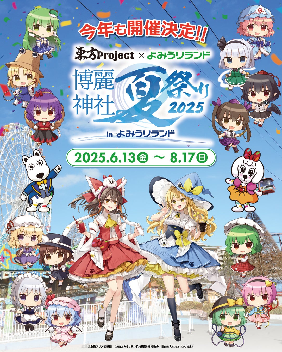 遊園地「よみうりランド」は、東方Projectとの第2弾となる二次創作コラボイベント「東方Project×よみうりランド 博麗神社夏祭り2025inよみうりランド」を6月13日(金)~8月17日(日)に開催します。(主催:博麗神社崇敬会)