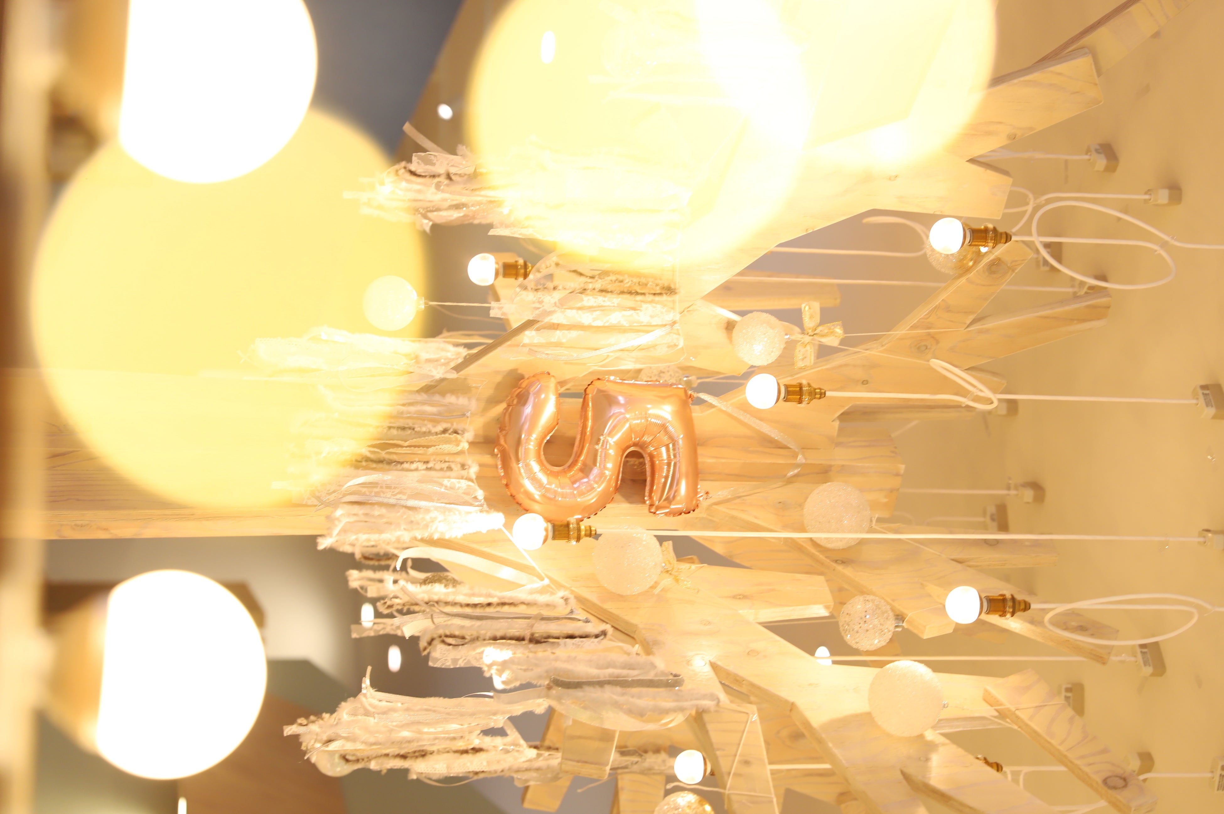 お子様の成長へ願いを込めたファブリックバルーンで、ご両親様の手で完成させる参加型背景を準備しています