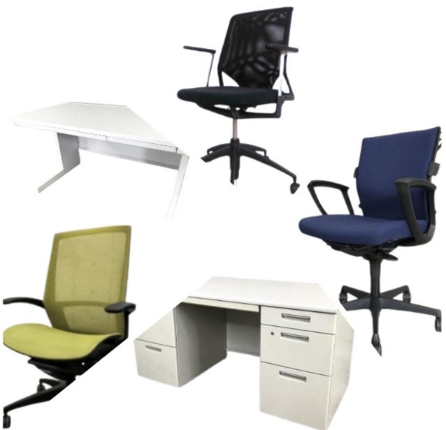 複合機、FAX、ビジネスホン、プリンター、パソコン、シュレッダー、分煙機、事務机、事務椅子、会議用テーブル、会議用椅子、書庫、ロッカー等オフィスに関するOA機器・オフィス家具全て