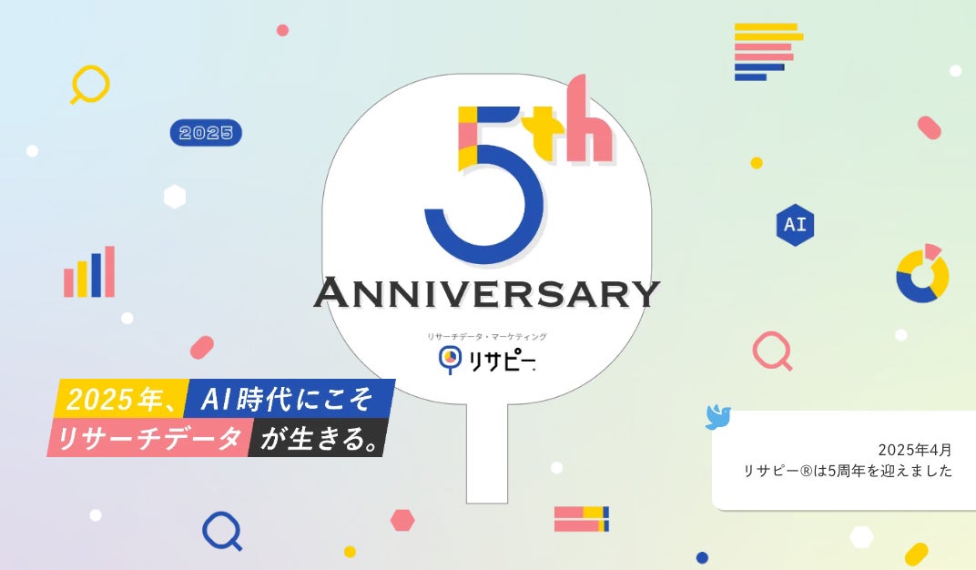 株式会社IDEATECH(本社:東京都港区、代表取締役社長:石川友夫、以下 IDEATECH)が提供する、ワンストップでリサーチデータマーケティングを実現する「リサピー®︎」(https://ideatech.jp/service/research-pr)は、皆さまのご支援を受けながら成長を続け、おかげさまで2025年4月に5周年を迎えました。これを記念し、5周年記念サイトを公開いたしました。