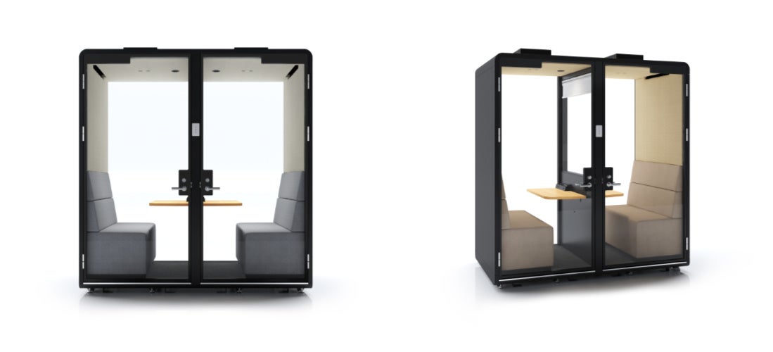 「WORKPOD」は、2020年7月の発売開始以来、ソーシャルディスタンスの確保やWeb会議の音対策等、“ニューノーマルな働き方”に対応した安心で快適なワークスペースとしてたいへん好評を頂いています。「WORKPOD 1on1タイプ」は、2人用サイズの「WORKPOD」をガラスパーティションで仕切り、スピーカーマイクを使用することで、対面でのコミュニケーションを実現しながら、感染対策にも配慮した商品です。