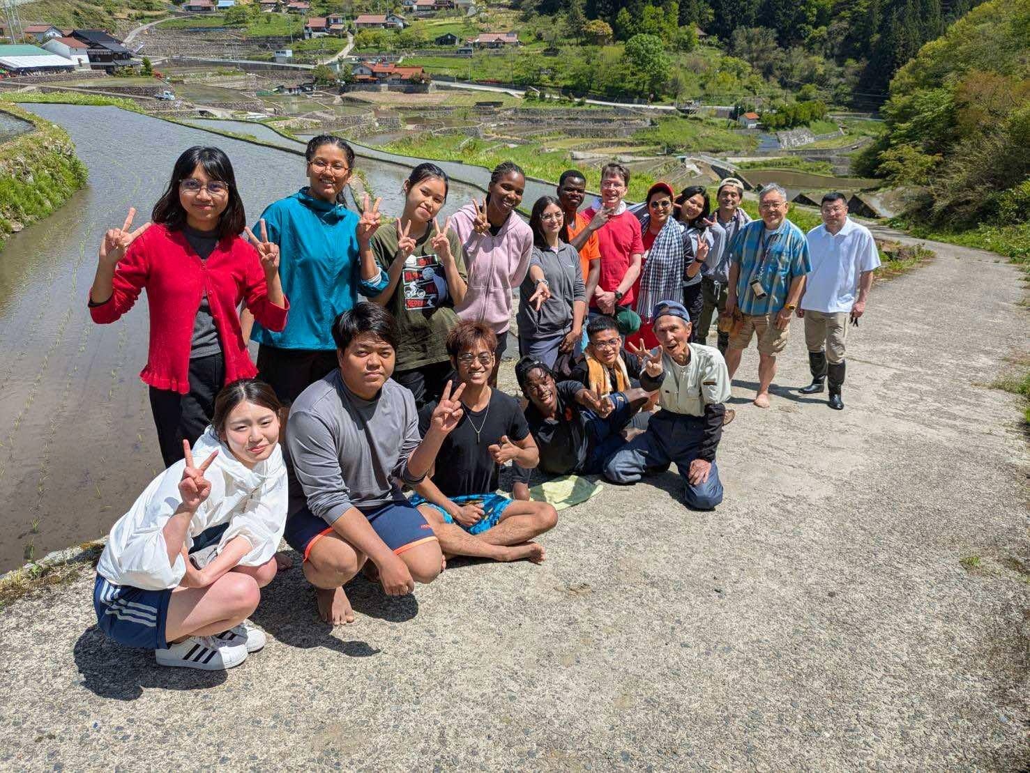 【叡啓大学】学生と留学生が安芸太田町「井仁の棚田」で田植え体験を行いました