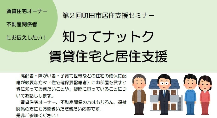【東京都町田市】町田市居住支援セミナー「知ってナットク 賃貸住宅と居住支援」を開催します