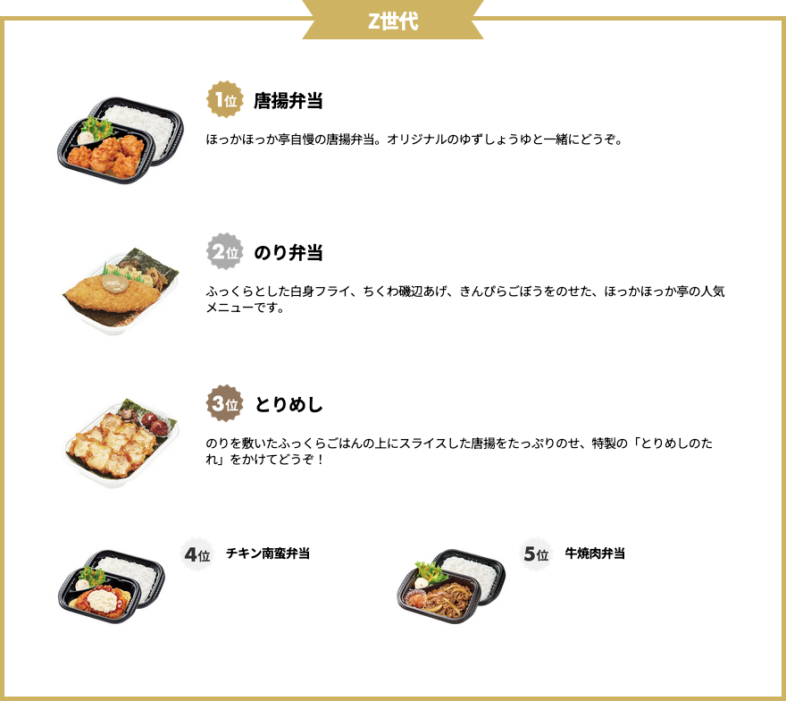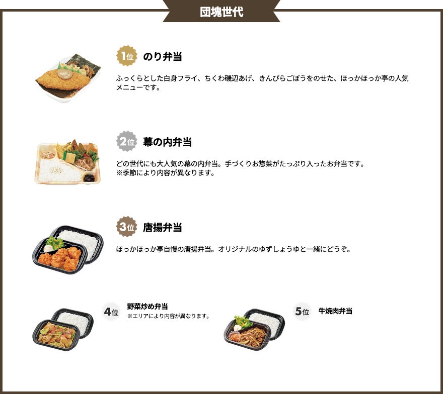 ■「Z世代vs.団塊世代!ほっかほっか亭人気お弁当ランキングTOP5」