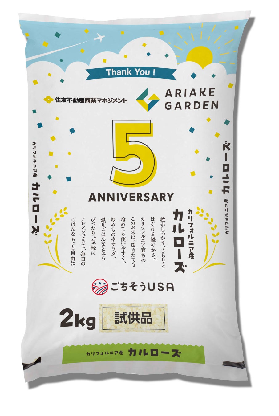 住友不動産商業マネジメント株式会社(本社:東京都新宿区 代表取締役社長:山本 直人)が運営する複合商業施設「有明ガーデン」(東京都江東区)では、開業5周年を記念する「総力祭」の中心企画として、「アメリカ・カリフォルニア州産 カルローズ米」(以下、『カルローズ米』)のプレゼントキャンペーンを実施いたします。