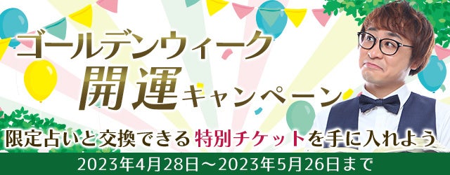 本キャンペーンでは、あなたを開運へと導く特別な鑑定をピックアップ!さらに、キャンペーン対象の鑑定を占っていただいた方には、『GW特別キャンペーンチケット』をプレゼント!期間限定の占いと交換ができますので、この機会にぜひ「アポロン山崎の占い」で占ってみてくださいね!