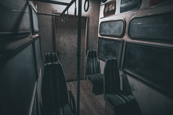 実際に使用されていた廃バスの一部を用いて、見知らぬ遠方へ出向くという不安心理を再現します。