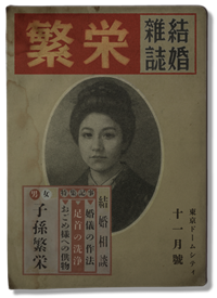 リニューアルオープンを記念し、結婚雑誌「繁栄」を刊行します。今回限りのオリジナル号が、「暗闇婚礼」前に登場。お化け屋敷体験前にぜひ、手に取ってご覧ください。