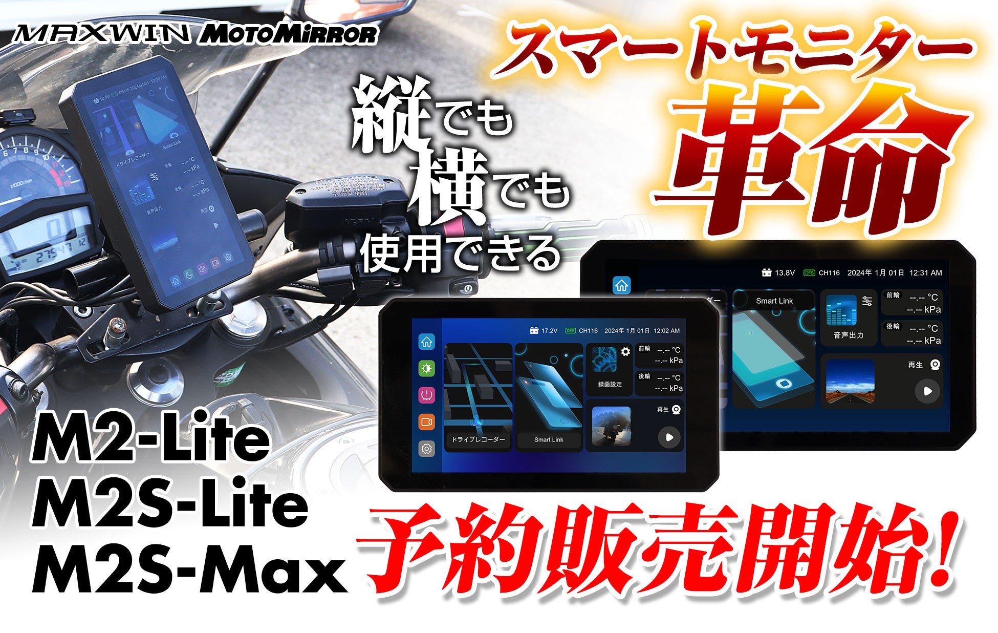 バイク用品ブランドMAXWIN(運営:昌騰有限会社、所在地:大阪府岸和田市)は、横置き縦置き両対応し、まるでスマホのように操作できる2025年最新モデル『M2-Lite/M2S-Max/M2S-Lite』が1/22より予約販売を開始しました。