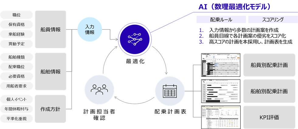 株式会社商船三井(本社:東京都港区、代表取締役社長:橋本 剛、以下、「商船三井」)と富士通株式会社(本店:神奈川県川崎市、代表取締役社長:時田 隆仁、以下、「富士通」)は、商船三井船員(以下、船員)の配乗計画を最適化する最適化AI配乗計画システム(以下、本システム)を共同で開発しました。2025年5月以降の業務適用に向け、最終フェーズに移行予定です。