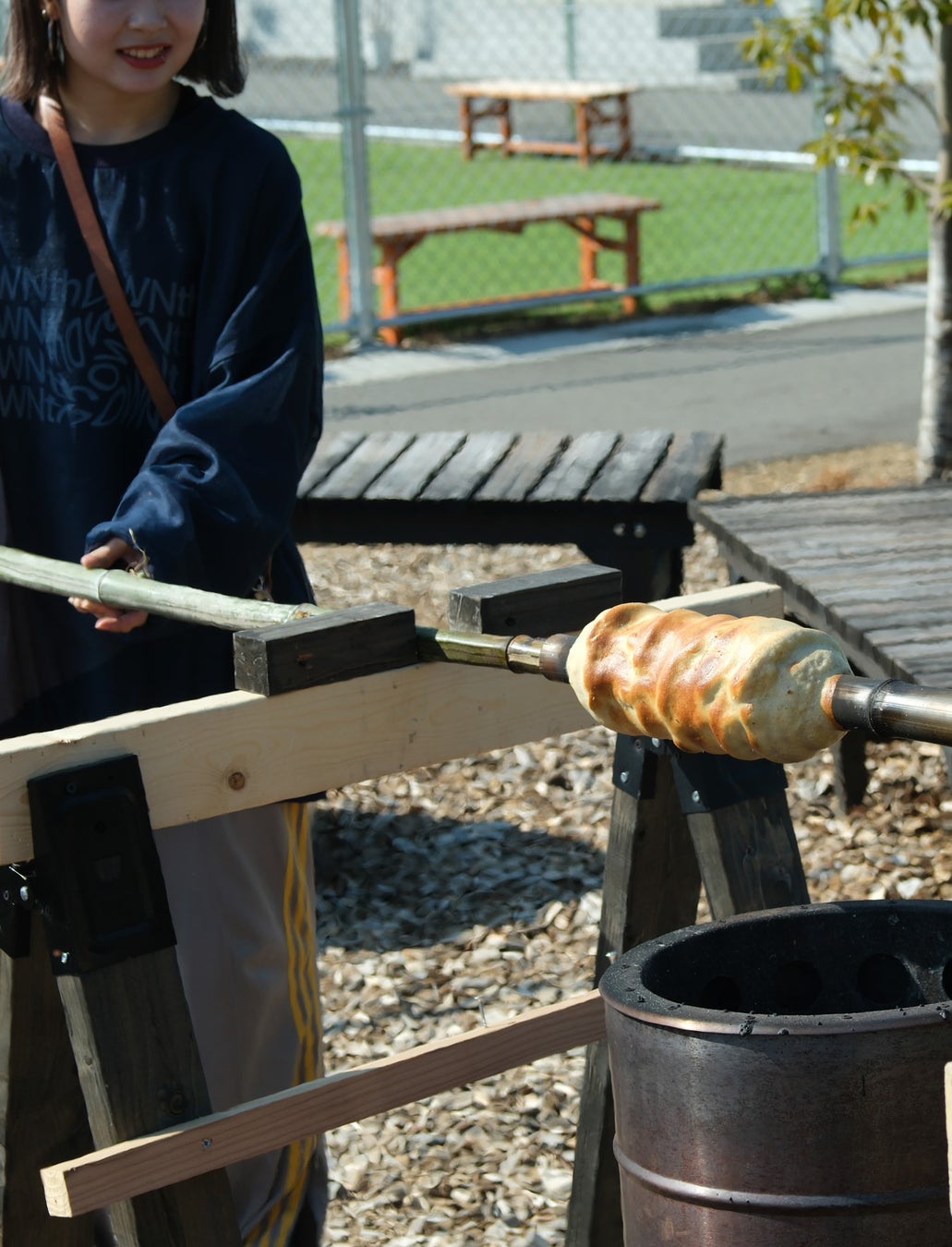 「竹バームクーヘン」まるごと1本手作り体験!WHATAWON『焚火カフェ』ハーブティー飲み放題も。