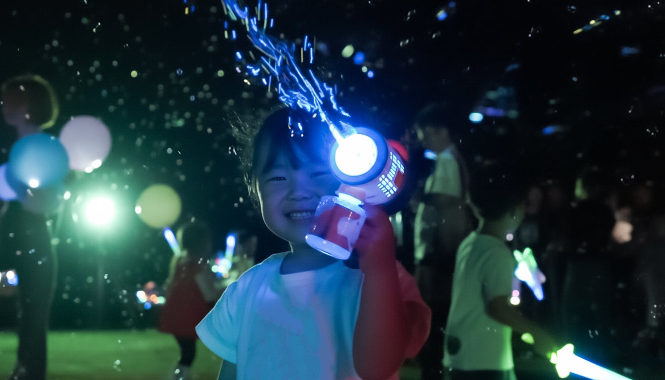 本イベントでは、事前に「予約優先1,000個の光るバルーン」と「先着100個の光るおもちゃ」を用意していました。しかし、予想を大きく上回る来場者数に対応するため、当日急遽 バルーンを1,000個追加、さらに100個のおもちゃを追加。それでも子どもたちが十分に楽しめるよう、最終的には さらに60個を追加配布しました。