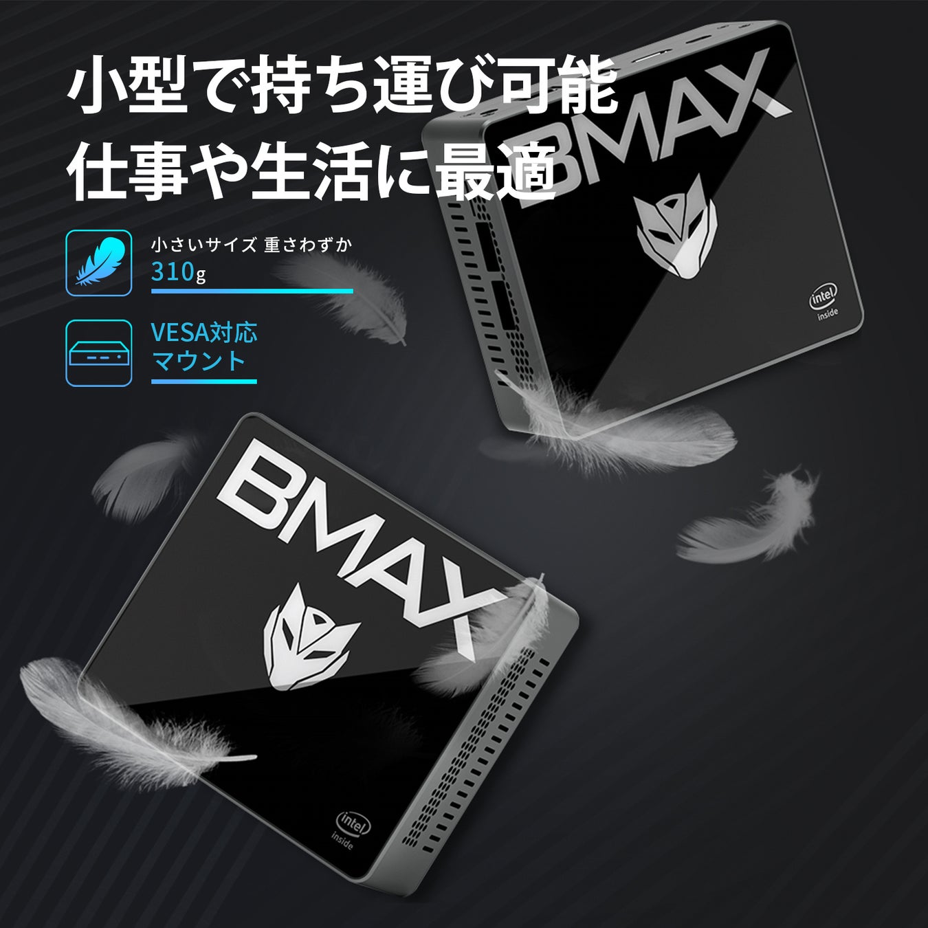 より省スペース: B2 Pro(310g) 幅12.2cm×長さ11.2cm×高さ4.4cmのコンパクトサイズで、置き場所を選ばず、 付属のVESAをモニターに取り付けて簡単に設置できます。 デスクトップパソコンと比べて、MINI PCフットプリントが小さいため、デスクトップがより整頓されます。