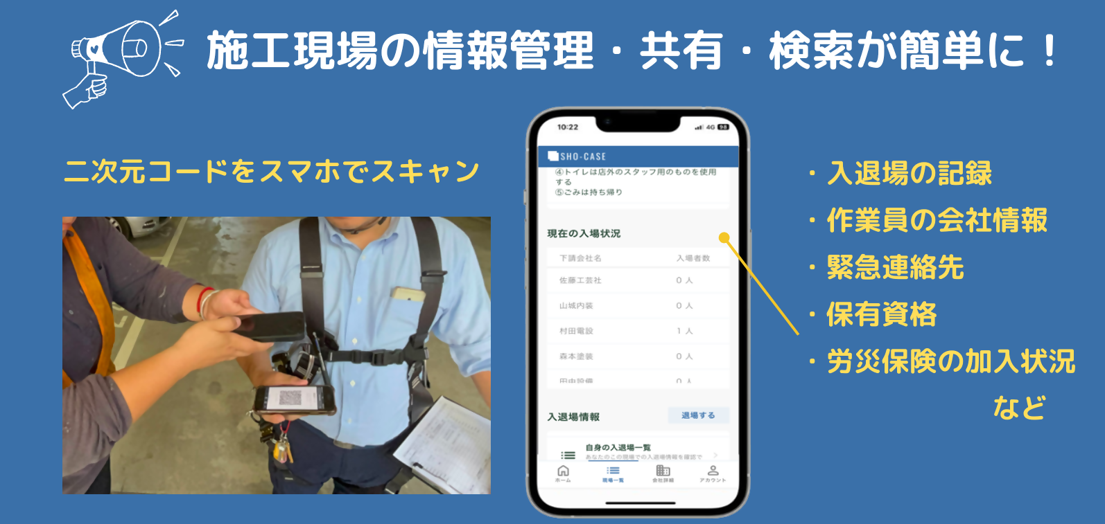 ・株式会社SHO-CASEは、スマートフォンで読み込む二次元コードを活用し、建設現場における利用に適した労務管理システムを開発しています。