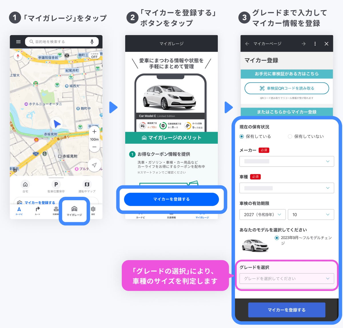 ■「マイカー登録」の手順と車幅を考慮した「ルート検索」機能について