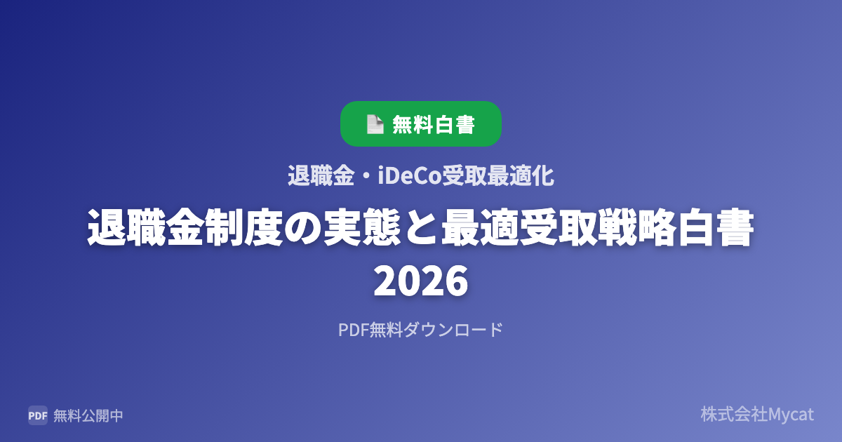 退職金・iDeCo受取最適化(https://taisyoku-sim.xyz)を提供する株式会社Mycat(本社:東京都目黒区)は、『退職金制度の実態と最適受取戦略白書 2026』を無料で公開しまし