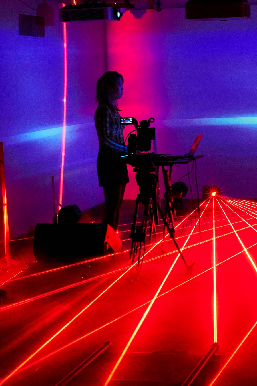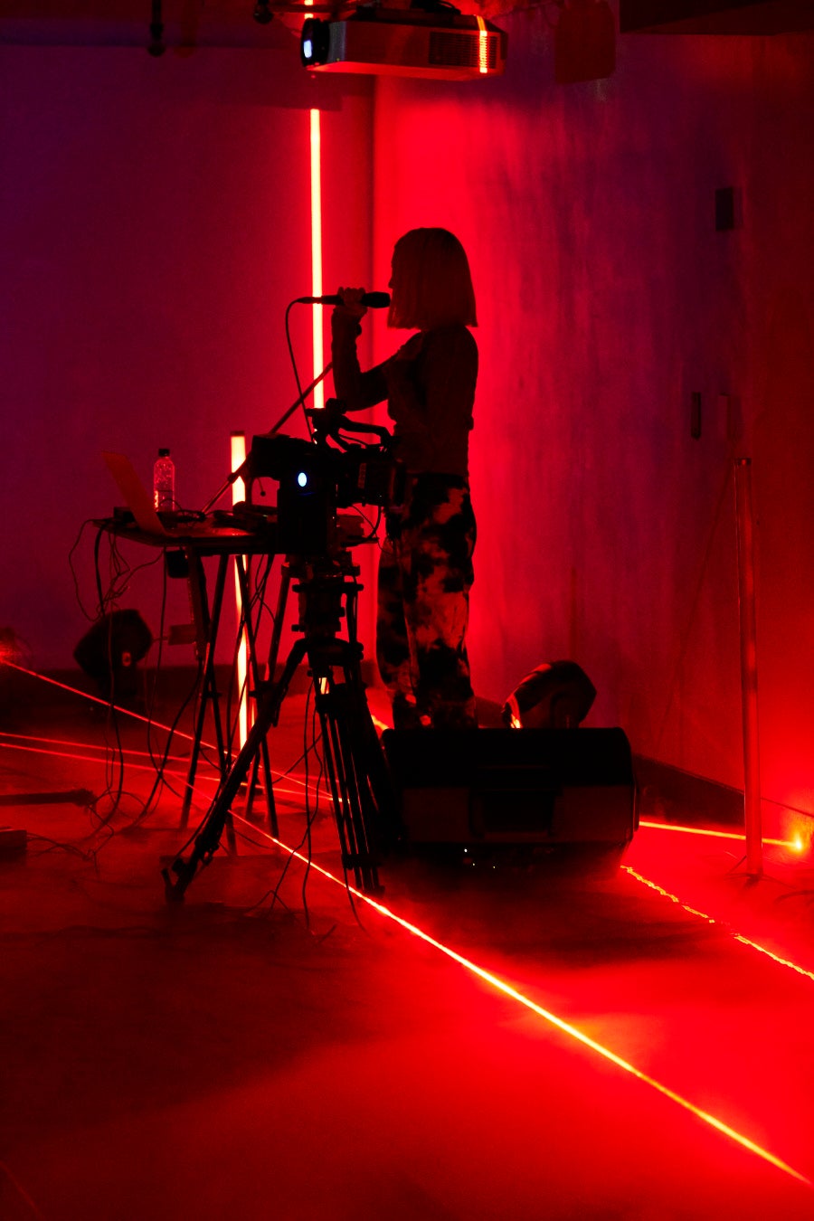 4曲目の新曲が途切れなく始まった。初披露となるこの曲は、ミニマルなテクノと無邪気で華奢な歌声が不協和音のようでありながらポップであるという不思議なバランスを併せ持っていた。会場のインダストリアルな空気の中を漂う儚い歌声と床に積もるスモークも相まって、まるで雲の上にいるような浮遊感。心躍らせる新しい香水の香りが宙に舞うような曲だった。