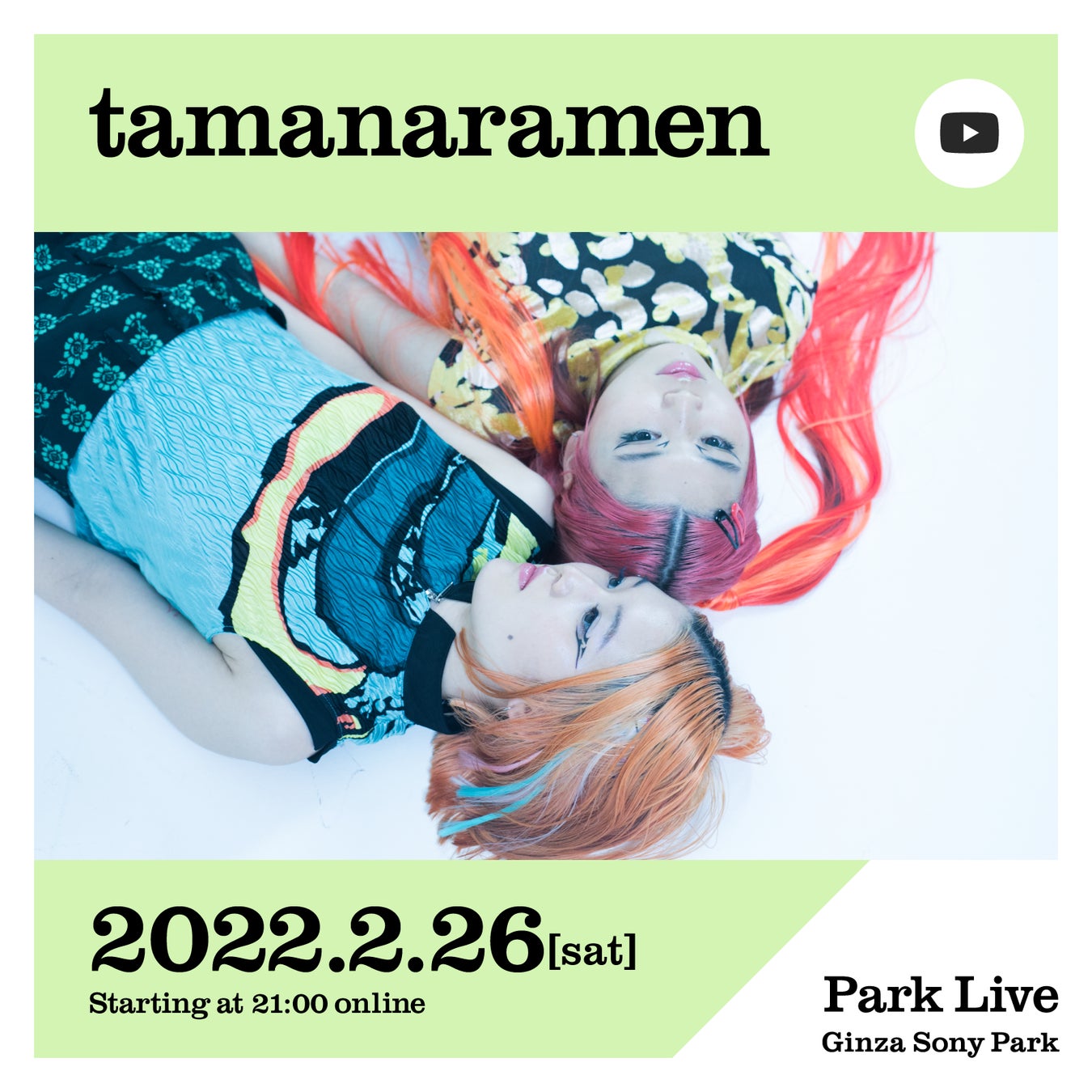 今回出演したアーティストは、アブストラクトな音像と詩的で繊細なボーカルで独自の世界観を作り出す、実の姉妹による注目のアーティストユニットtamanaramen(玉名ラーメン)。エクスペリメンタルで独創的な世界観をYouTube Liveで生配信しました。ライブ本番の様子はGinza Sony Park公式YouTubeチャンネルのアーカイブからご覧いただけます。URL:https://youtu.be/SQZcrel_zvY