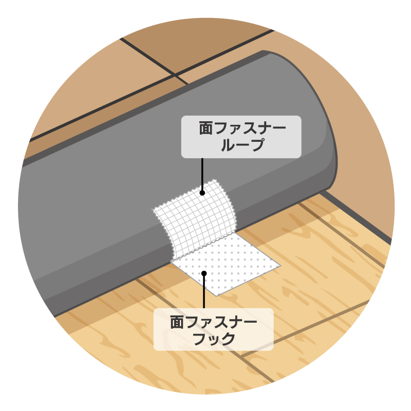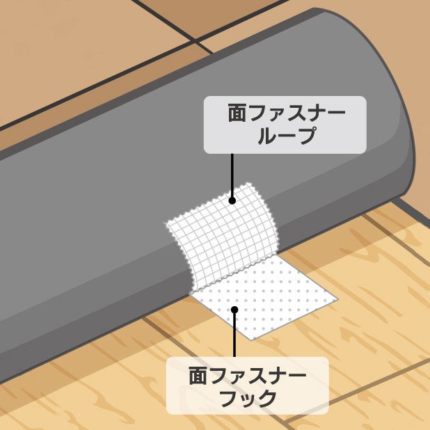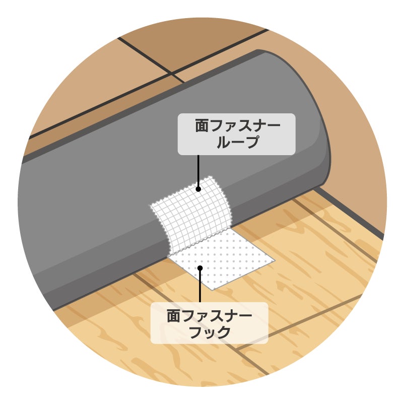 面ファスナー仕様で、タイルカーペットの脱着が簡単