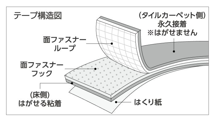 面ファスナー式だから がっちり固定・取り外して洗える キレイにはがせるタイルカーペット固定テープ 新登場