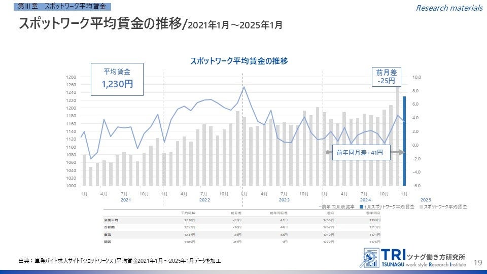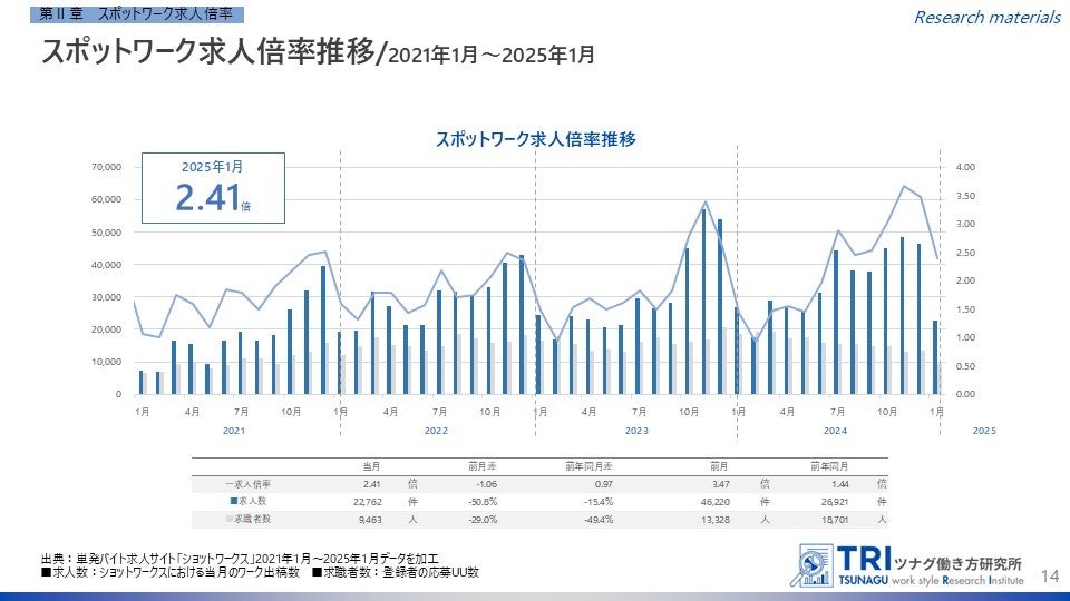 単発バイト求人サイト「ショットワークス」2021年1月~2025年1月データ