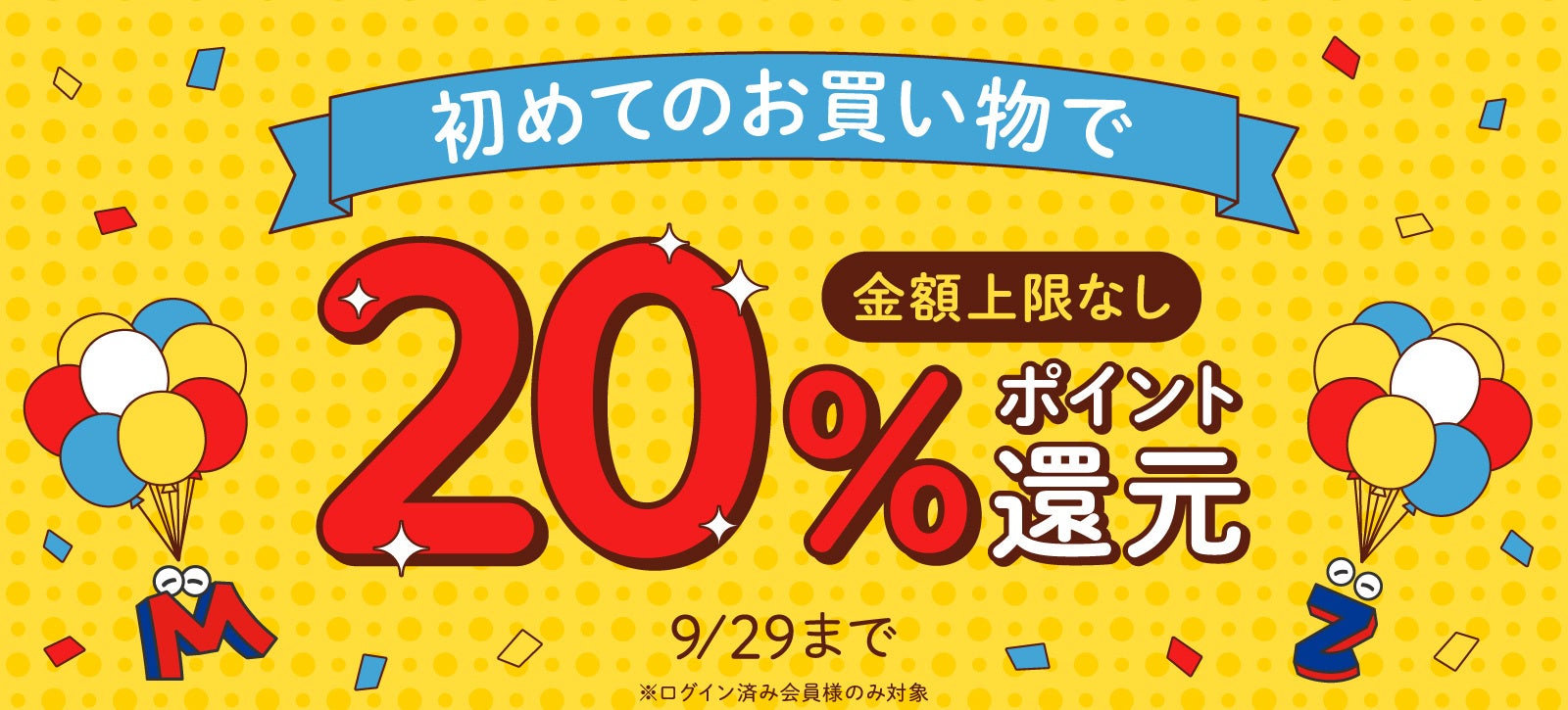 さらに、還元ポイントに上限はございませんので何円分買っても初回決済なら20%ポイント還元!!