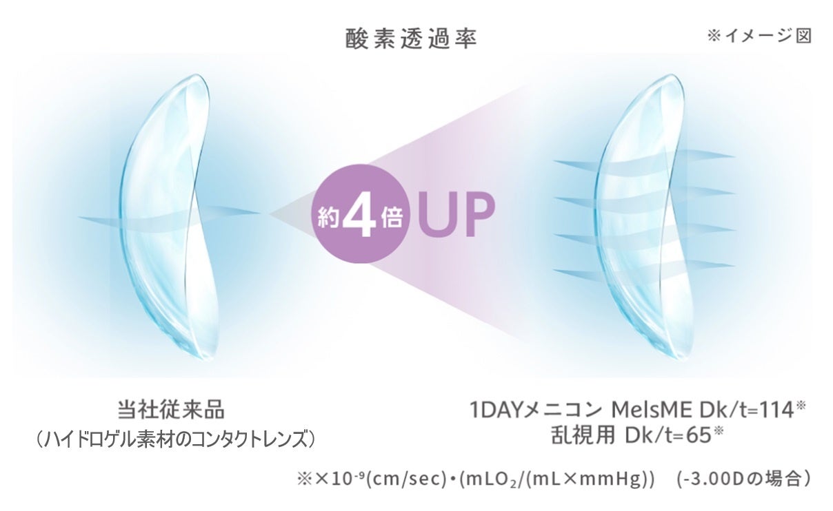株式会社メニコン(本社:名古屋市中区葵三丁目21番19号、取締役兼代表執行役社長 CEO:川浦康嗣)は、2025年7月1日(火)より、定額制コンタクトレンズサービス「メルスプラン」専用ブランド「MelsME(メルスミー)」に、酸素透過性の高いシリコーンハイドロゲル素材の1日使い捨てコンタクトレンズ『1DAYメニコン MelsME』、『1DAYメニコン MelsME トーリック(乱視用)』を新たに導入することをお知らせいたします※1。全国のメルスプラン加盟施設にてお取り扱いいたします。