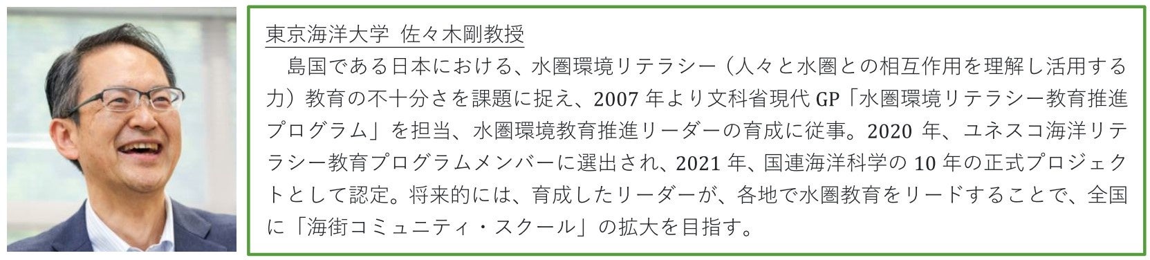 国際的に活躍する日本の海洋リテラシーの普及・教育の第一人者である東京海洋大学の佐々木剛教授を招き、鉄炭電池の投下等による運河浄化体験活動等の居住者向けのイベントを実施する予定です。住まう物件に隣接する身近な運河を起点に、生物多様性等の海洋リテラシーを育みながら、地域貢献にもつながる体験を提供してまいります。