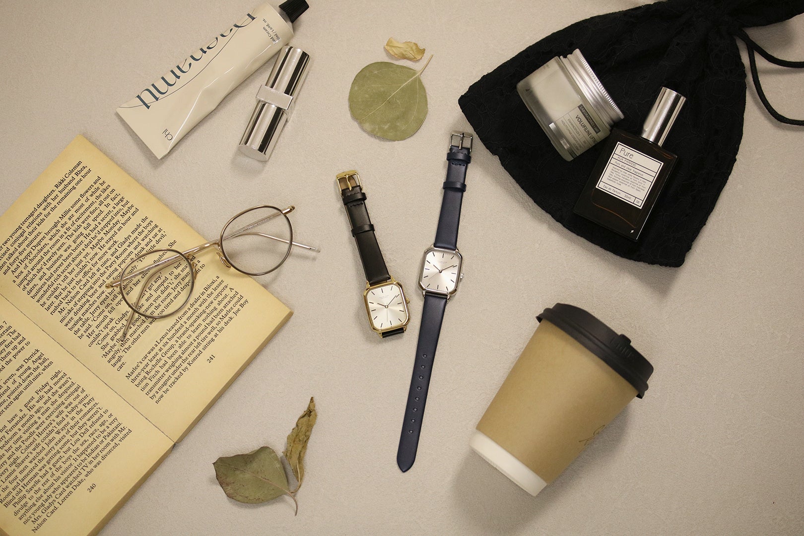 今回の別注モデルはトレンドのヴィンテージテイストを取り入れたレクタンギュラー型(長方形)ケースを採用。あえて角に丸みを持たせ、やわらかい印象であらゆるファッションに合わせやすくしました。