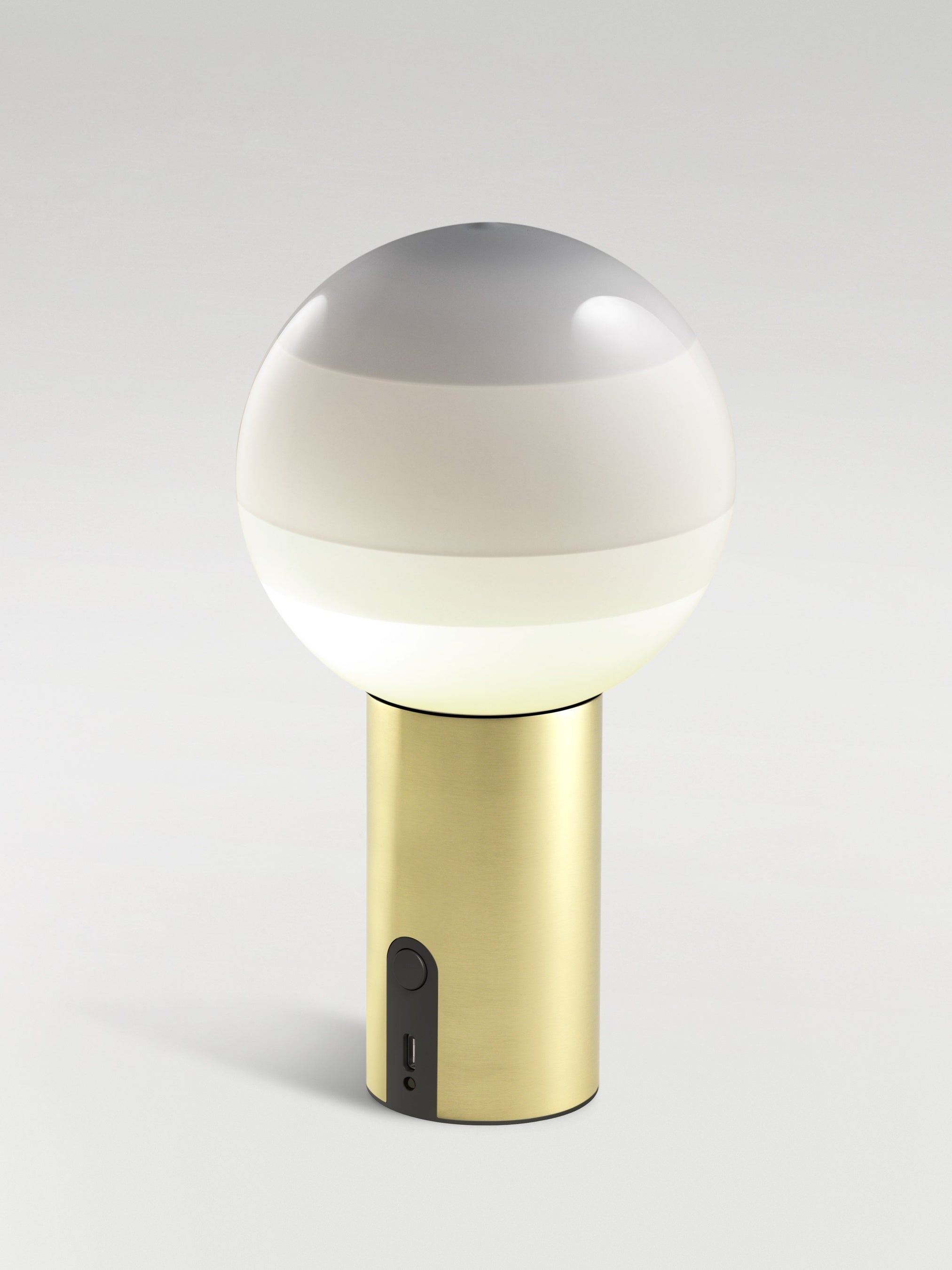 イタリア人デザイナー、Luca Nichetto(ルカ・二ケット)が手掛けた、まるでベルのような遊び心あふれるデザインの「Easy Peasy」は、持ち運び可能な充電式のテーブルランプ。吹きガラスとメタルで構成され、丸みを帯びた美しいフォルムが印象的です。「easy peasy(とっても簡単!)」の名の通り、トップのノブ(つまみ)を回すだけで調光・調色が可能です。