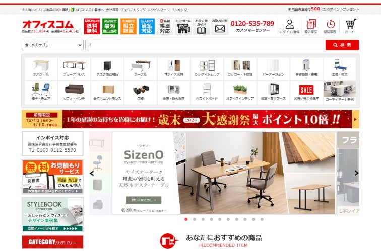 2007年の創業以来「簡単に最安で最速のかっこいい空間づくり」を理念に、オフィス家具の製造・販売からオフィスの空間設計、電話、ネットワークなどのインフラ回りまでオフィスづくりのソリューションを提供しているオフィスコムは、コロナ禍でのリモート勤務拡大ニーズも捉え、近年ECサイトの売上を大きく伸ばしています。オフィスコムではECサイトでも理念の体現を追及し、購入者である企業担当者が把握すべき情報にアクセスしやすい画面設計、欲しいタイミングで適切に出力可能な帳票の設計、家具の組み立てスケジュールや企業担当者の予定をマッチングさせるお届け日の提示等、ユーザーニーズを的確に捉えて顧客視点のきめ細やかなECサービスを拡充してきました。