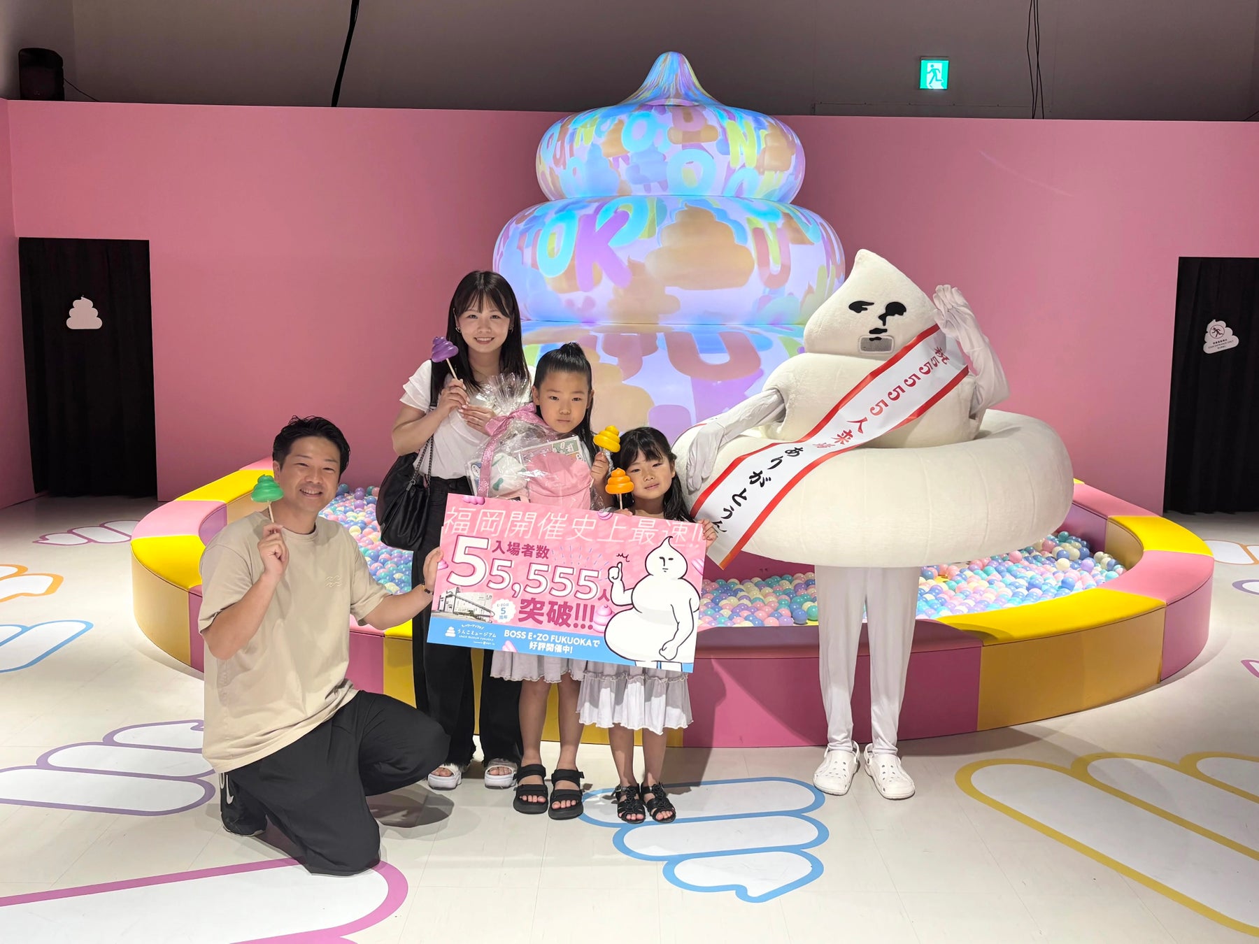 この夏5周年を迎えるBOSS E・ZO FUKUOKA イベントホールにて開催中の「\パワーアップ!!/うんこミュージアム FUKUOKA Supported by地球人.jp」の来場者が6月30日(月)に、福岡開催史上最速で55,555人を突破しました!