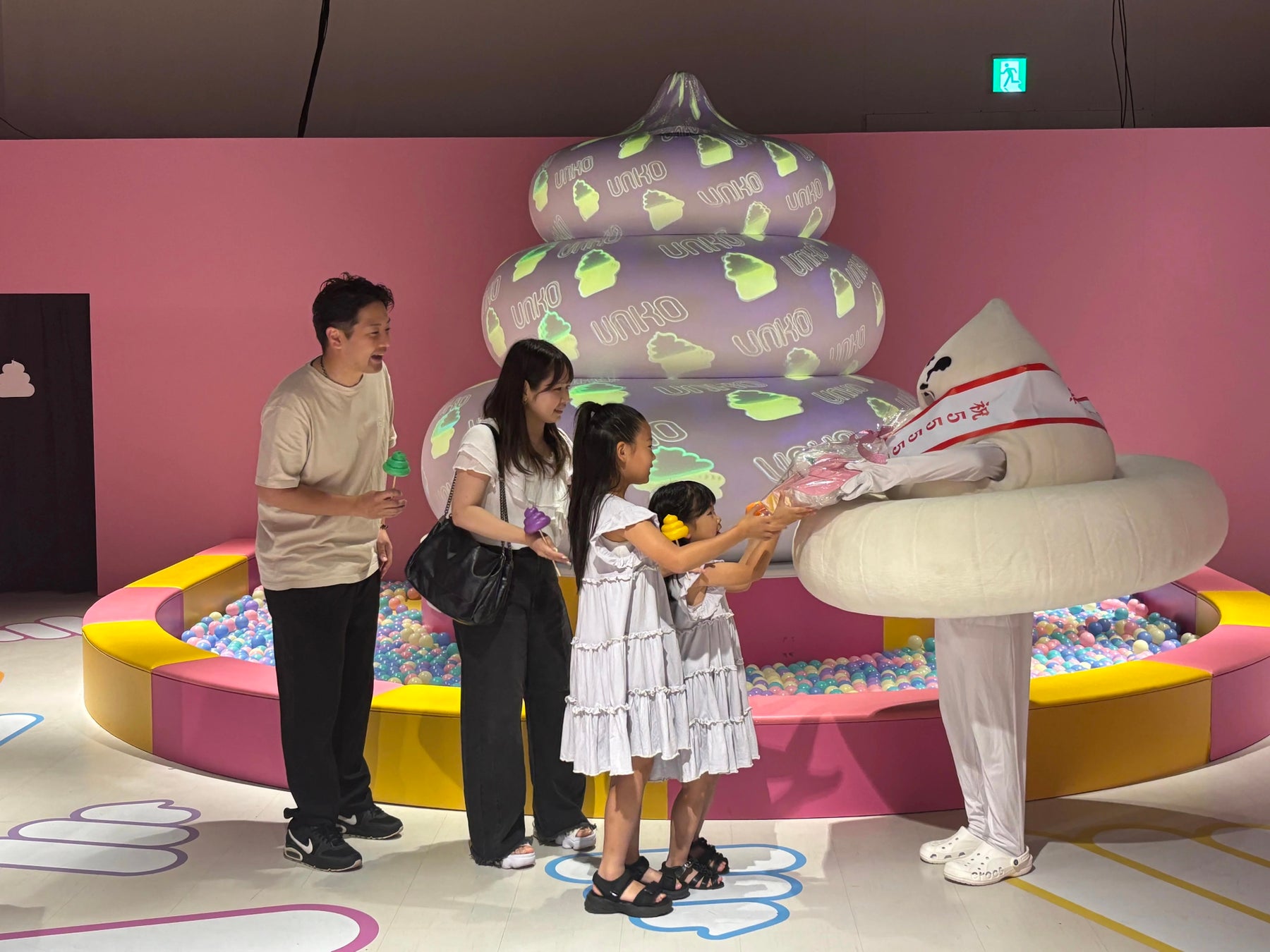 来場55,555人目のウンカーをうんこミュージアムの守り神・ウンベルトがお祝い!