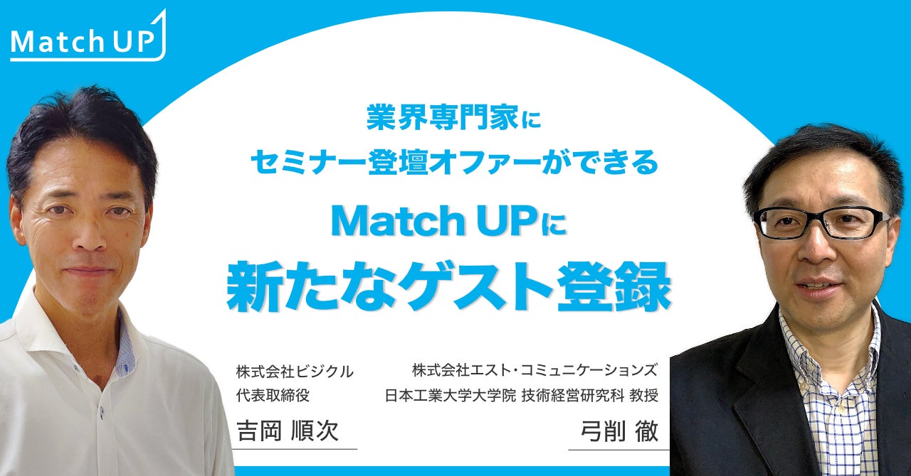 業界専門家にセミナー/イベント登壇のオファーができる「Match UP」、株式会社エスト・コミュニケーションズ 弓削 徹氏、株式会社ビジクル 吉岡 順次氏などが新たにゲスト登録!