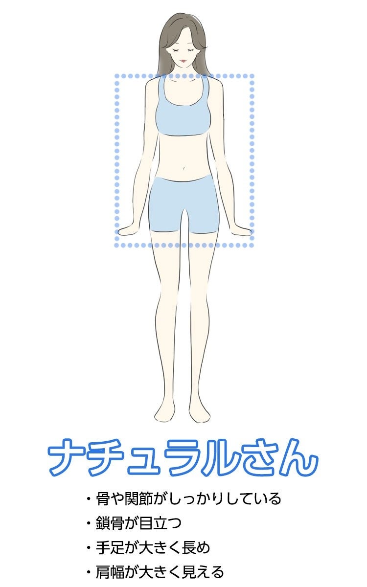 3つに分類された骨格の種類です。自分自身の体型をきれいに見せるデザインや素材を知ることができます。
